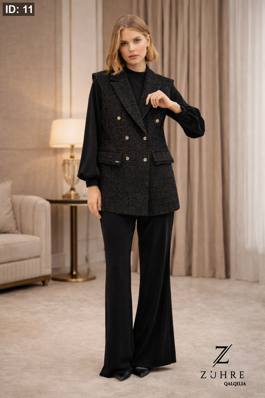 طقم رائع من ماركة زُهرة ثلاث قطع بتفاصيل رائعة