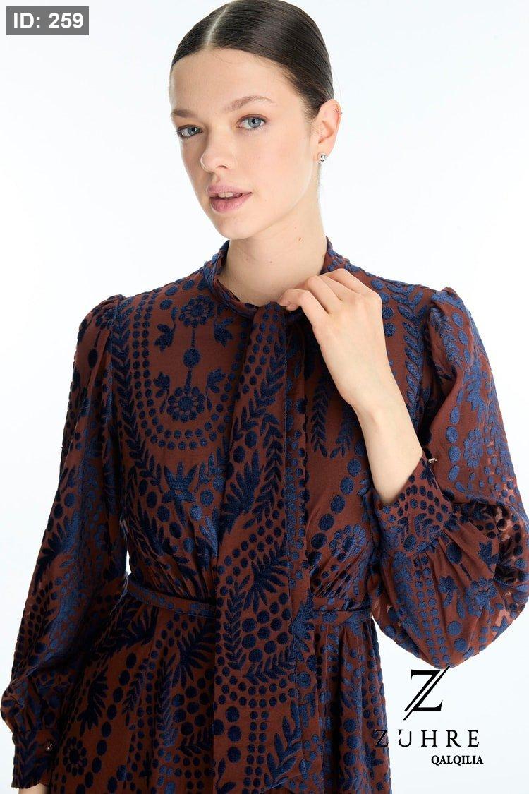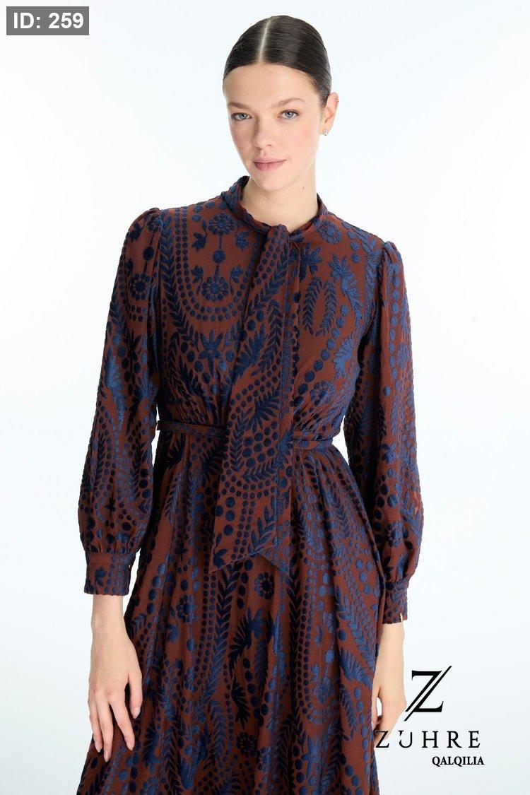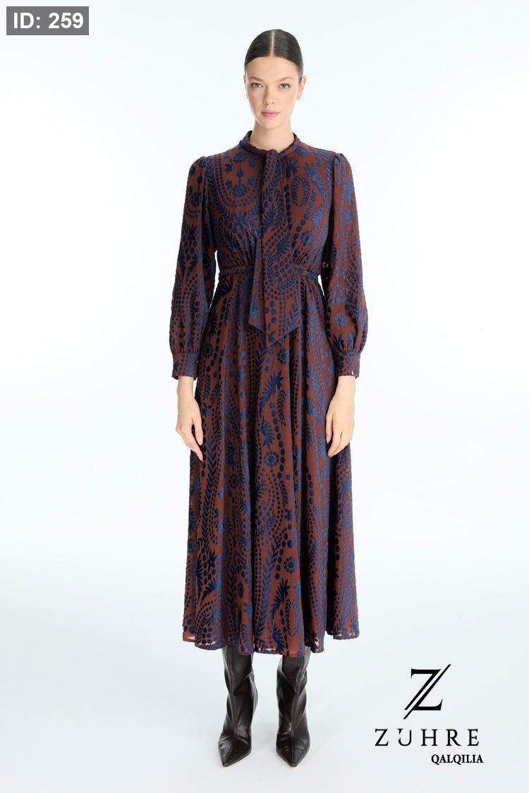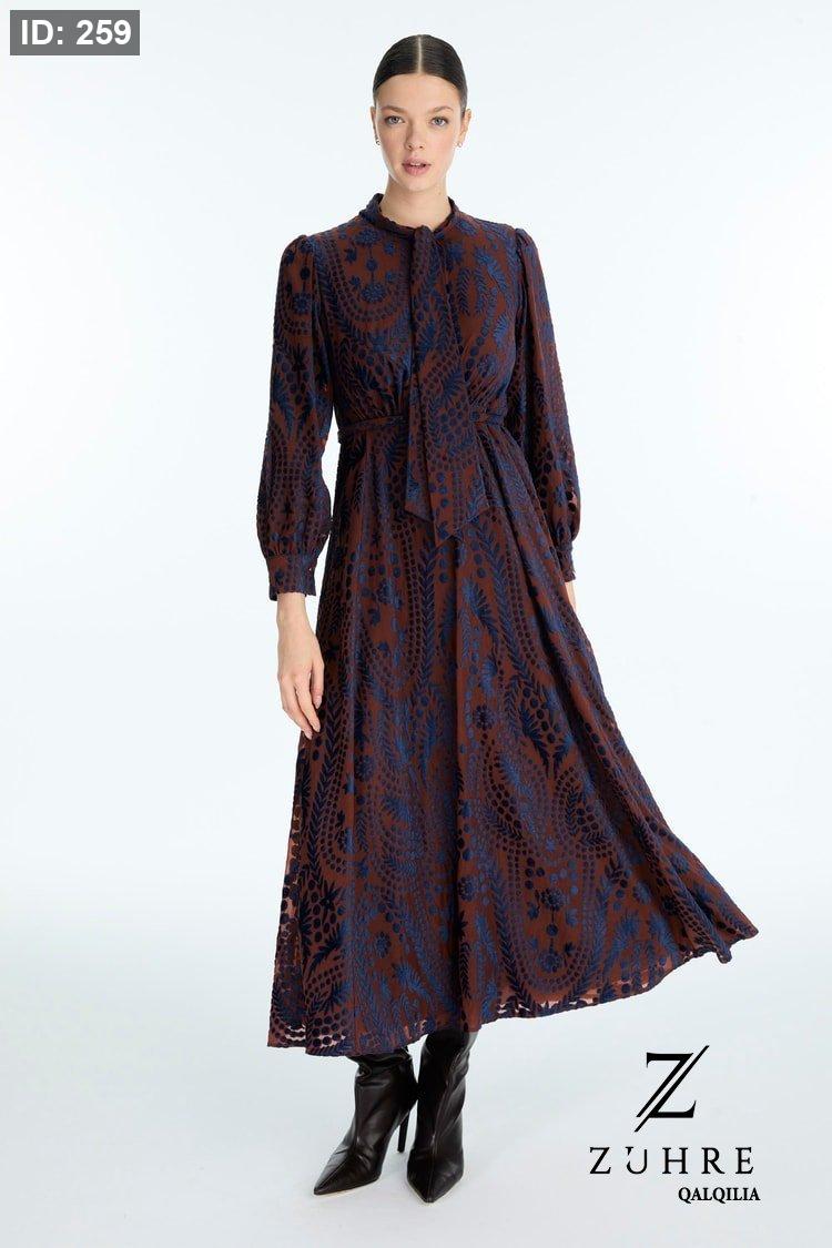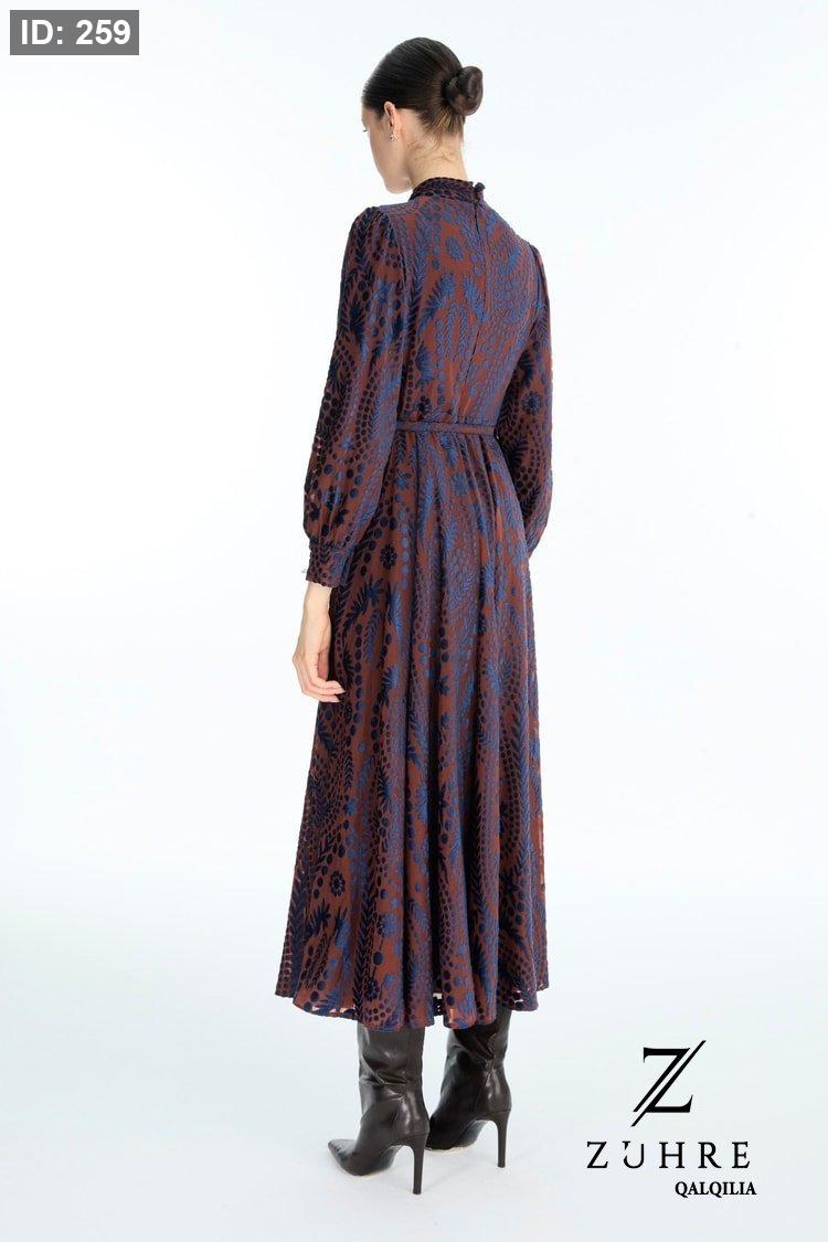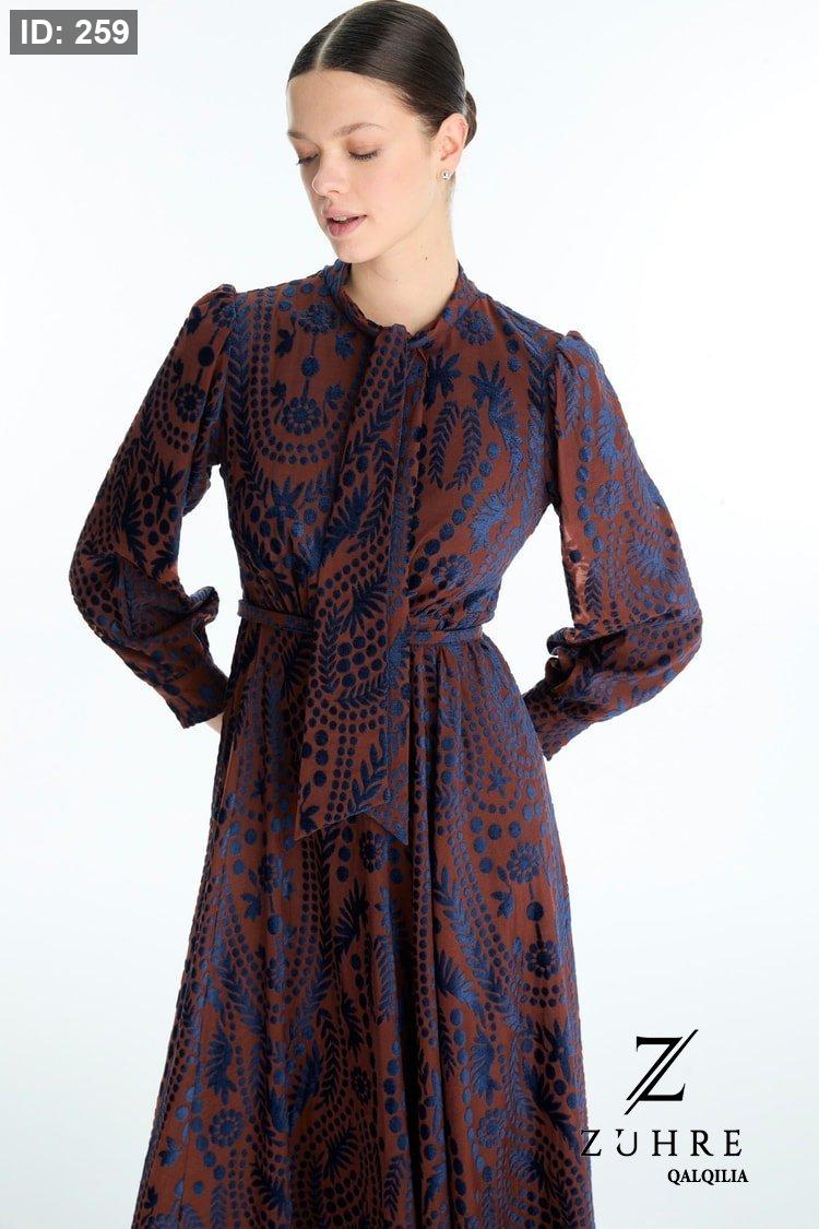 فستان ذو قماش خريفي شتوي بتفاصيل رائعة مميزة الطول من الكتف للاخر 141 سم